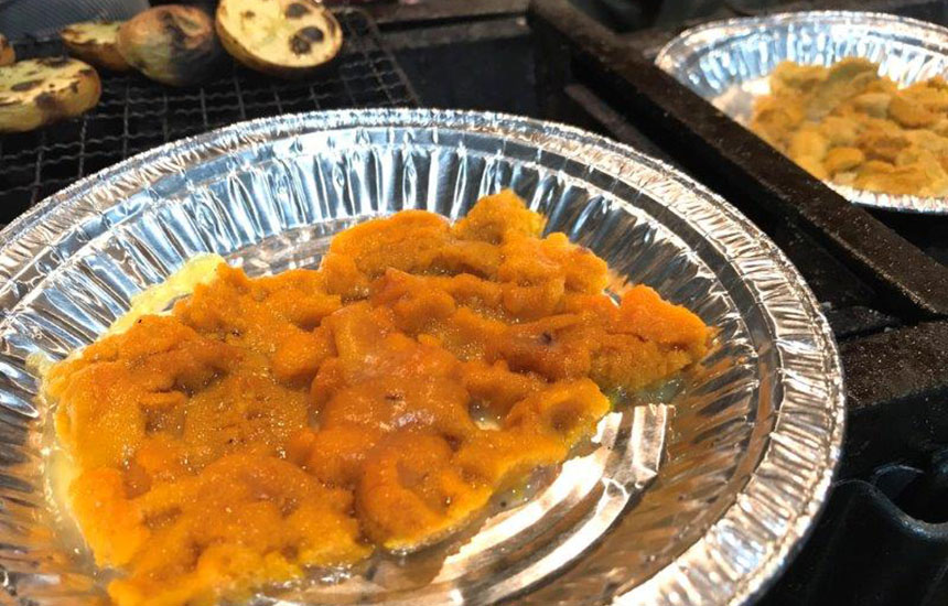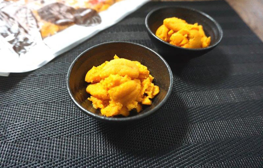 利尻島で獲れた7月のバフンウニを新鮮なうちに蒸して、真空パックに、そして冷凍しました! 使いたいとき、食べたいときに、パリッと割って使いたい分だけ取り出せます。 茶碗蒸しや、ちらし寿司に便利です。究極の贅沢はバーベキューで!!