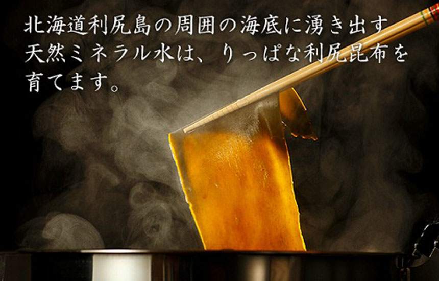島の周囲の海底にも数多く地下水が湧き出す天然ミネラル水は、りっぱな利尻昆布を育てます。 形はふぞろいですが、澄んだ香りの良いおだしは変わりません。