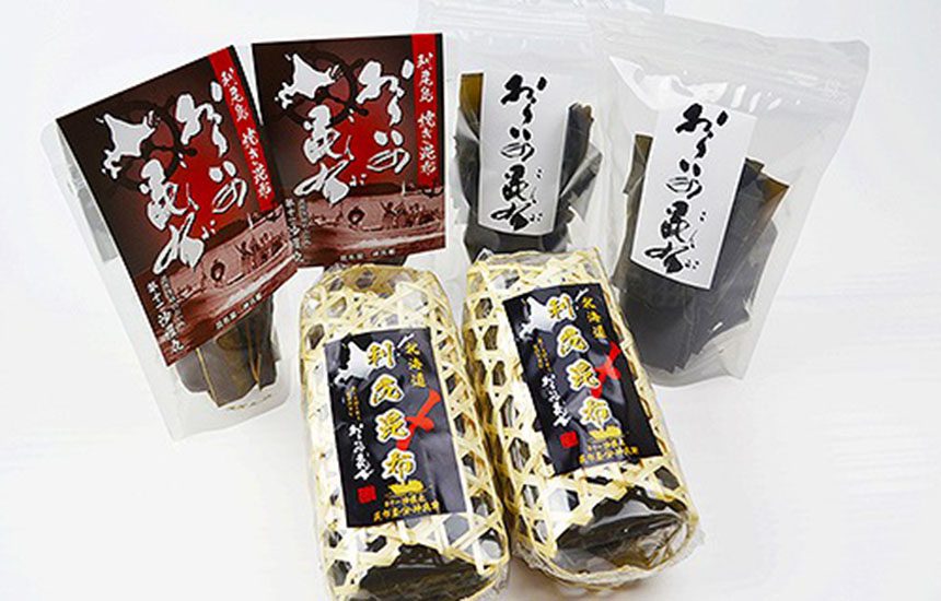 【内容量】 利尻切り昆布(3枚入、5袋)×2 利尻焼き昆布10本入×2 利尻カット昆布60g×2