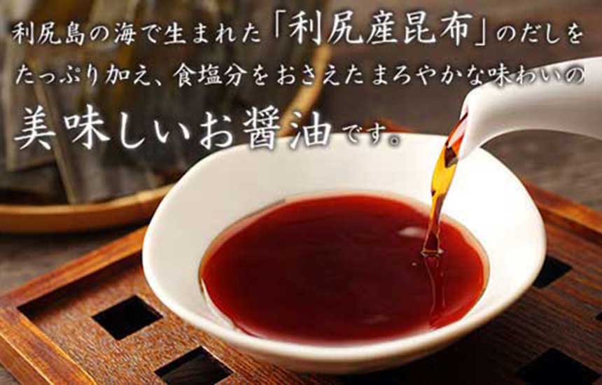利尻島の海で生まれた「利尻産昆布」のだしをたっぷり加え、食塩分をおさえたまろやかな味わいの美味しいお醤油です。