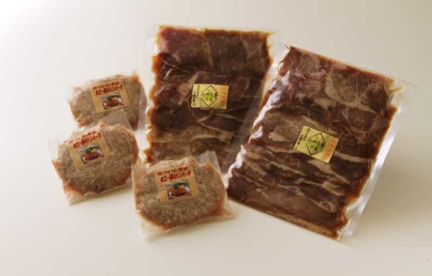 焼肉は特製のたれで漬け込み、家庭で食べやすいパックにしました。 ハンバーグはホエー豚をブレンドし、しっとり柔らかい上品な食感です。