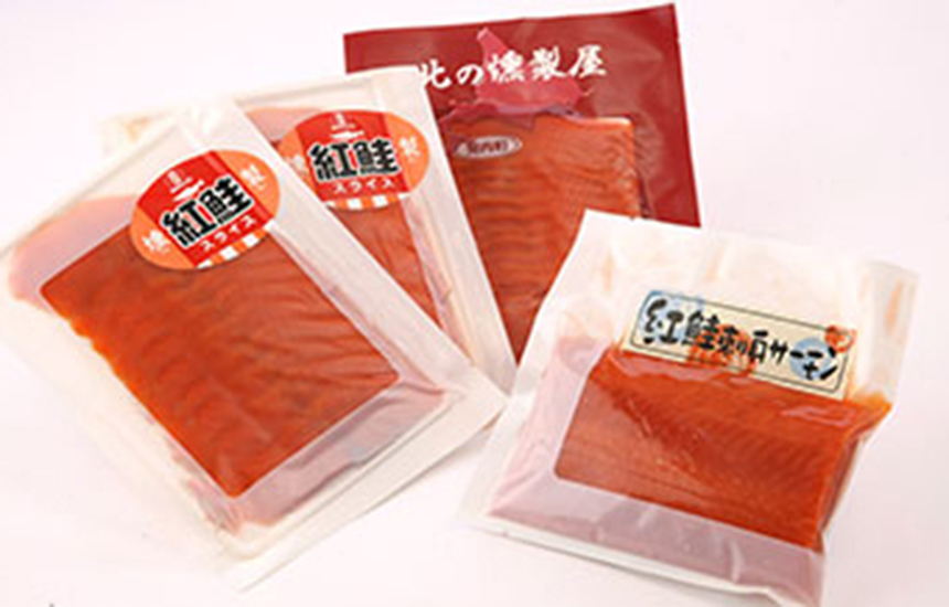天然紅鮭を原料に、1954年から受け継ぐ伝統の味付け、製法で丁寧に燻製したスモークサーモンです。 紅鮭はコクがしっかりある鮭です。