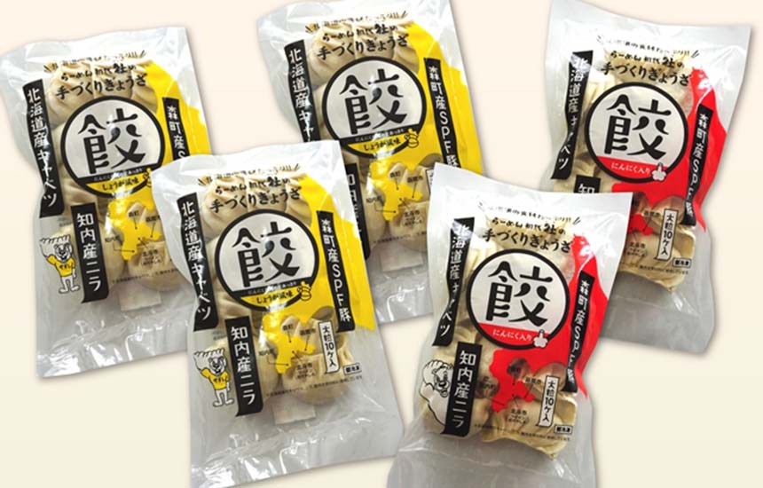 知内町産のにらを使用して、地産地消にこだわるラーメン店が北海道産たっぷりの餃子を作りました。